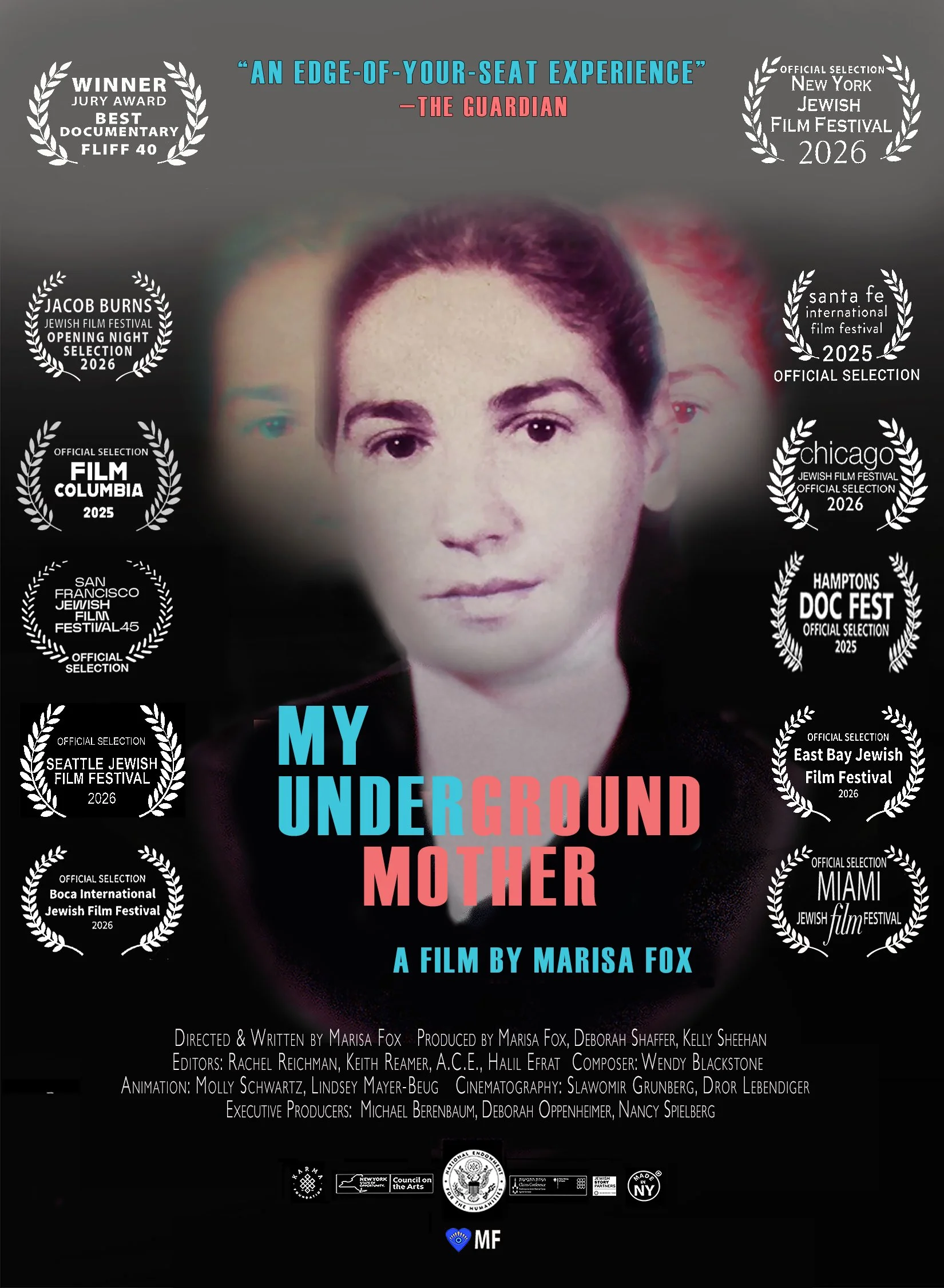 MY UNDERGROUND MOTHER is a gripping documentary feature that explores the daring sisterhood and hidden traumas of survivors of Jewish women’s camps during the Holocaust through a daughter’s unraveling of the stories her mother told. The film has been made with assistance from The National Endowment for the Humanities, the Conference on Jewish Material Claims Against Germany supported by the German Federal Ministry of Finance, Jewish Story Partners, the New York State Council on the Arts, the NYC Women’s Fund for Media, Music and Theatre, presented by the City of New York Mayor’s Office of Media and Entertainment, in Association with the New York Foundation for the Arts, the Jewish Film Institute and many private foundations. The film’s fiscal sponsor is the Center for Independent Documentary (CID)